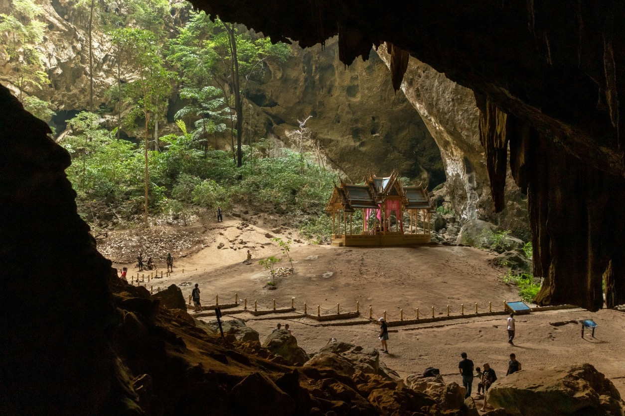 - Have lunch before going to Phraya Nakhon Cave. Located in Khao Sam Roi Yot National Park, Phraya Nakhon Cave is a large cave about 500 meters from Laem Sala Beach. The cave ceiling has openings that allow light to enter, and there is the Khuha Karyasan Throne Hall, a four-sided pavilion built during the reign of King Rama V. Other interesting features in Phraya Nakhon Cave include a trapezoidal well lined with terracotta bricks, 1 meter wide and 4 meters deep, called Phraya Nakhon Well, and a natural bridge, which is a natural bridge formed by two light-filtering openings in the cave ceiling and a stone bridge in the middle. You can see them along the walkway inside the cave before reaching the pagoda-shaped rock pillars. the stalactites and stalagmites that have formed into a pagoda shape, and the ashes of Luang Pho Ngoen.