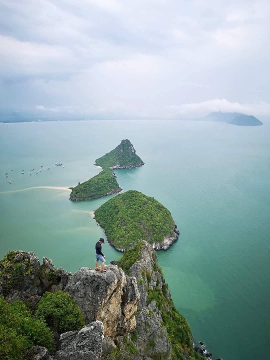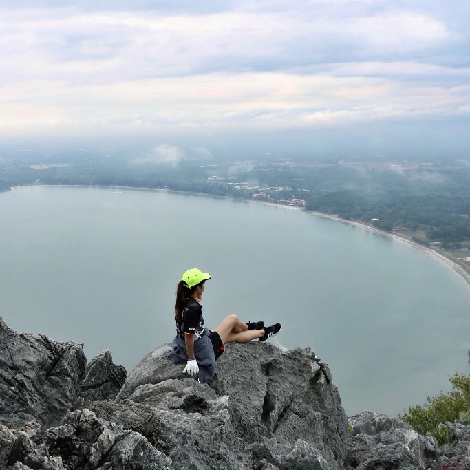 Khao Lom Muak is a limestone mountain approximately 902 feet high, located within the protected area of Air Force Base 5th, Ao Manao, Prachuap Khiri Khan. It’s a famous tourist destination for adventure, mountain climbing, and challenging your courage with 360-degree views of the mountain and the sea from the top.
