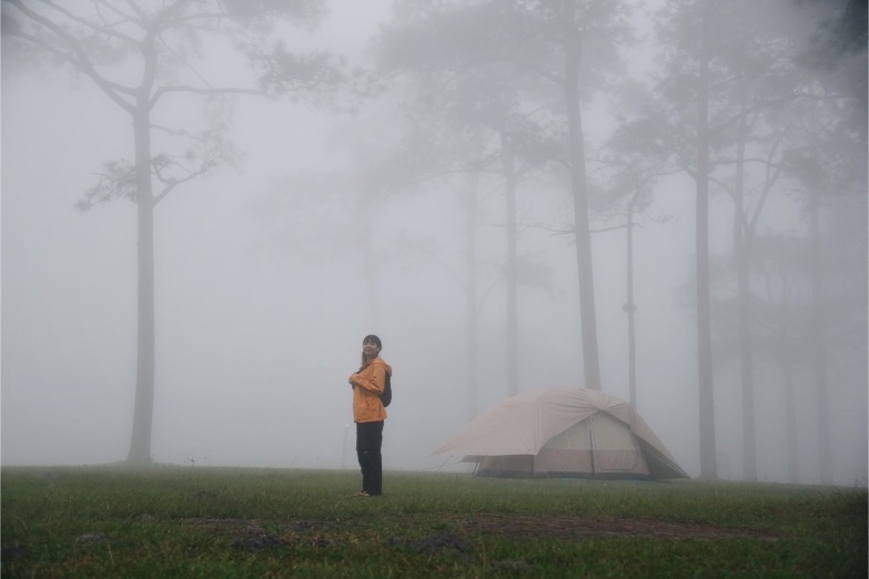 Phu Kradueng is located in Loei at an altitude of 1,316 meters above mean sea level and is open from October 1st to May 31st. The hiking trail is 9 kilometers, consisting of 5 kilometers uphill and approximately 4 kilometers on flat ground. The weather is quite cool, and there are shops selling drinks, snacks, and food at the campsites and rest points along the trail.